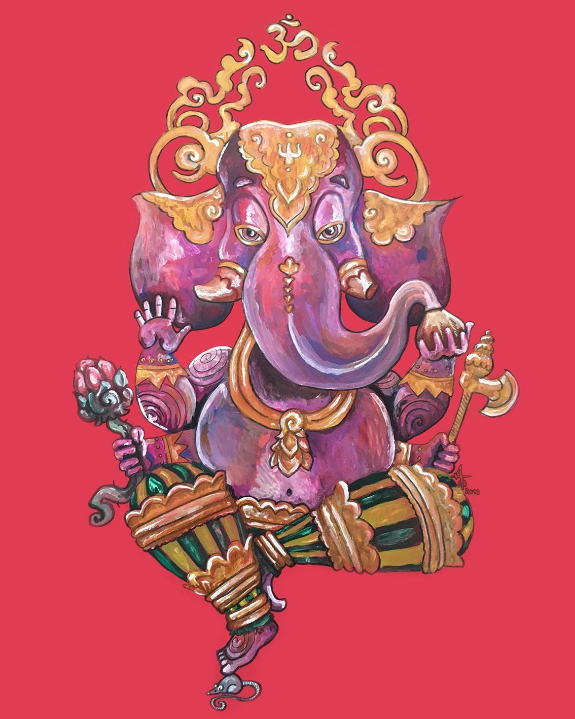 A devotional image of Ganesh for a private commission. Acrylic on coloured paper. 60cm x 50cm.